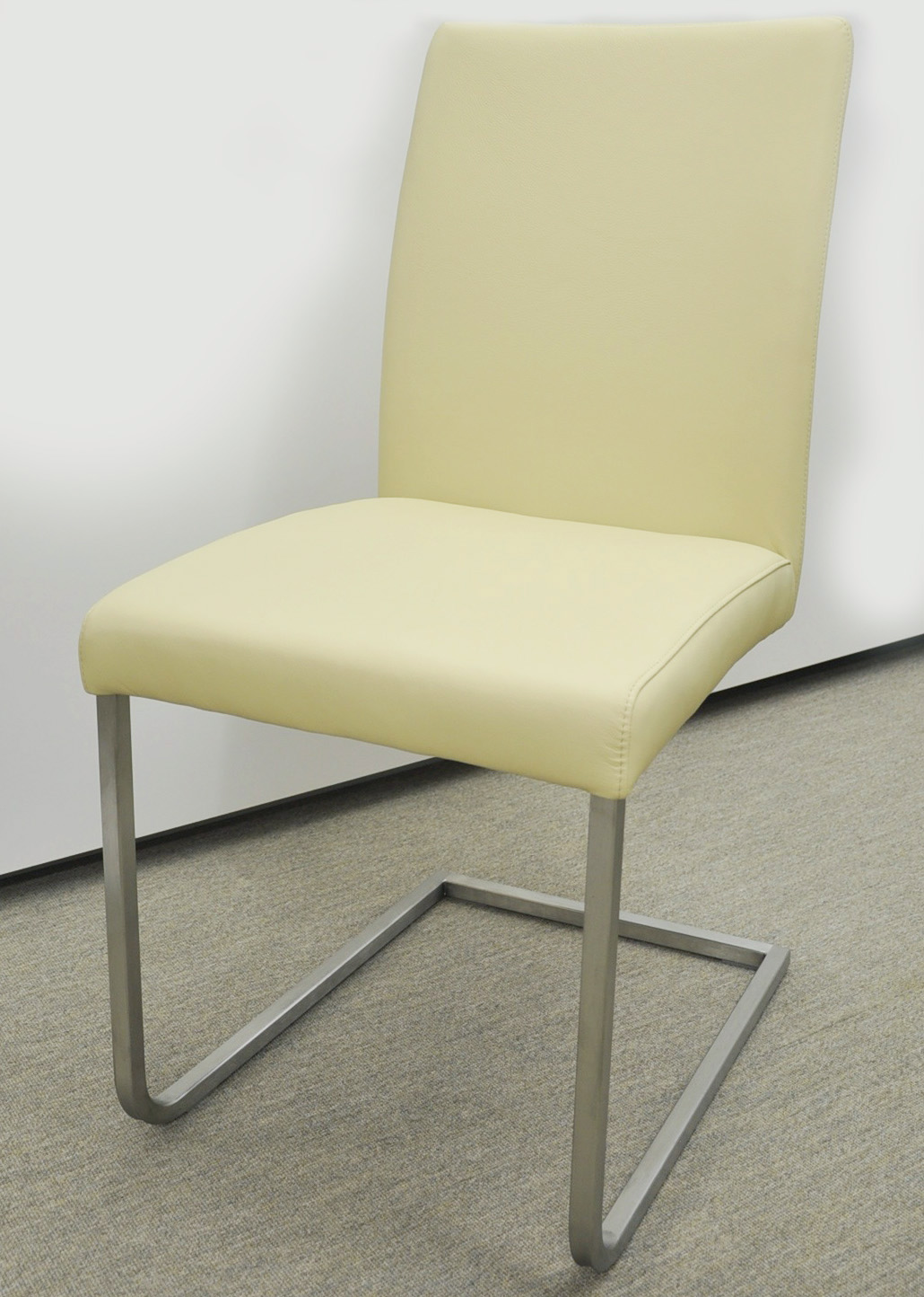 Freischwinger Echtleder Hermes, Farbe Ivory. Gestell Vierkantrohr Stahl. Fr. 390.- Vierfuss-Stuhl Echtleder Hermes, Farbe Lime. Gestell Vierkantrohr Stahl. Fr. 315.-